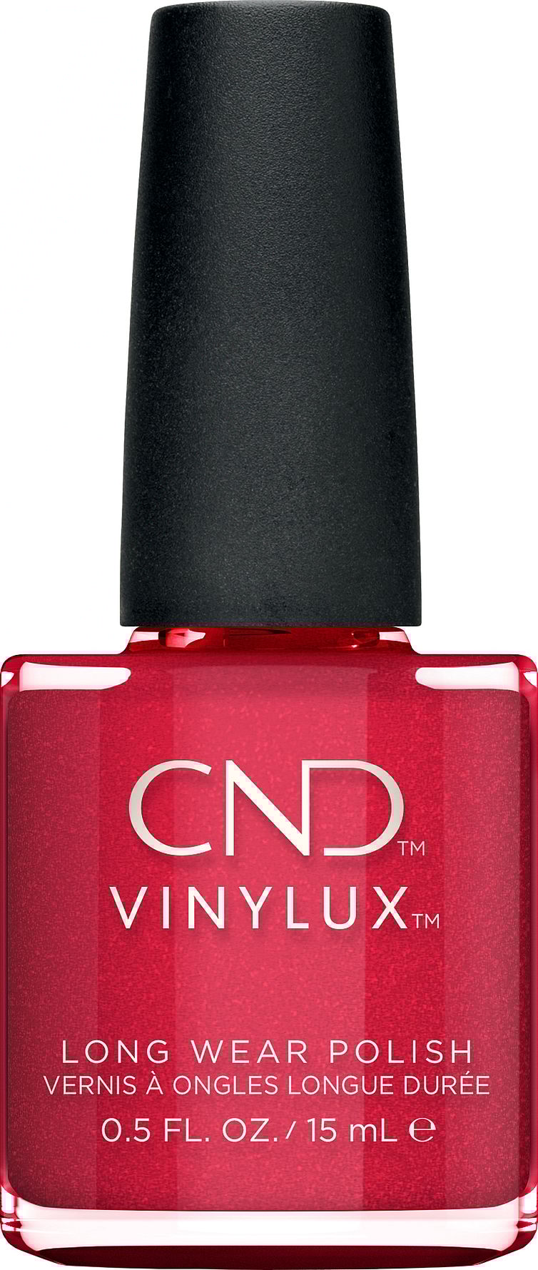 CND Vinylux Long Wear Polish er et prisvindende 2-trins system med indbygget base coat og en hurtig påføring med den kurvede pensel, 8 1/2 minuts tørretid og let aftagning.