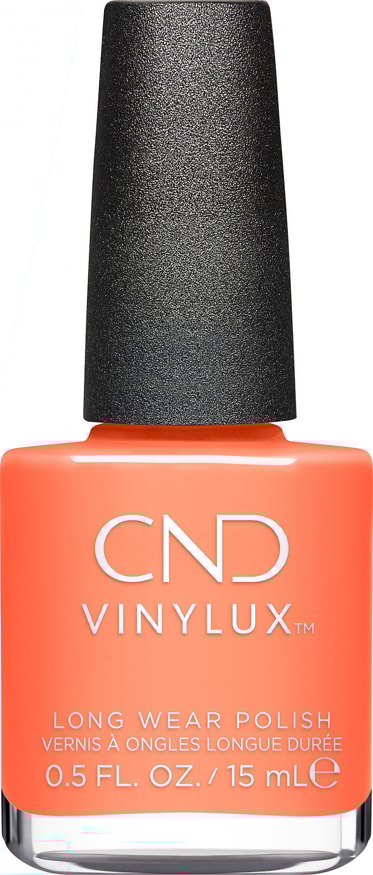 CND™ VINYLUX™ Long Wear Polish er et prisvindende 2-trins system med indbygget base coat og en hurtig påføring med den kurvede pensel, 8 1/2 minuts tørretid og let aftagning.