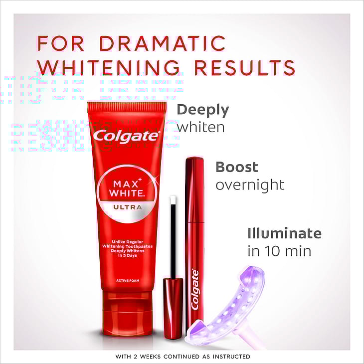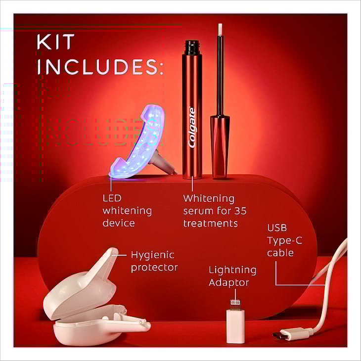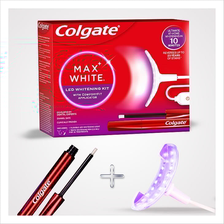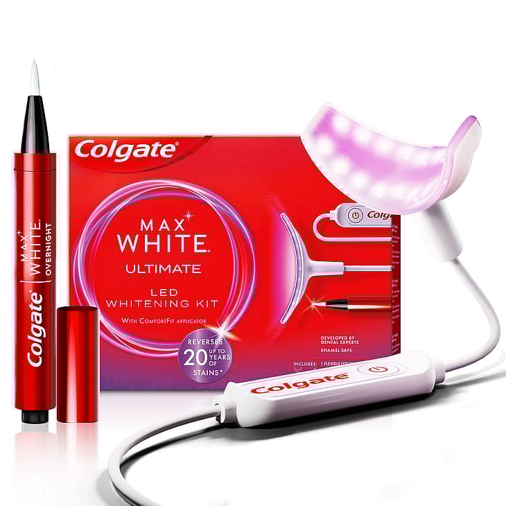 Colgate Max White Ultimate LED Whitening Kit fjerner op til 20 års misfarvninger* ved hjælp af en whitening pen og LED lys.
