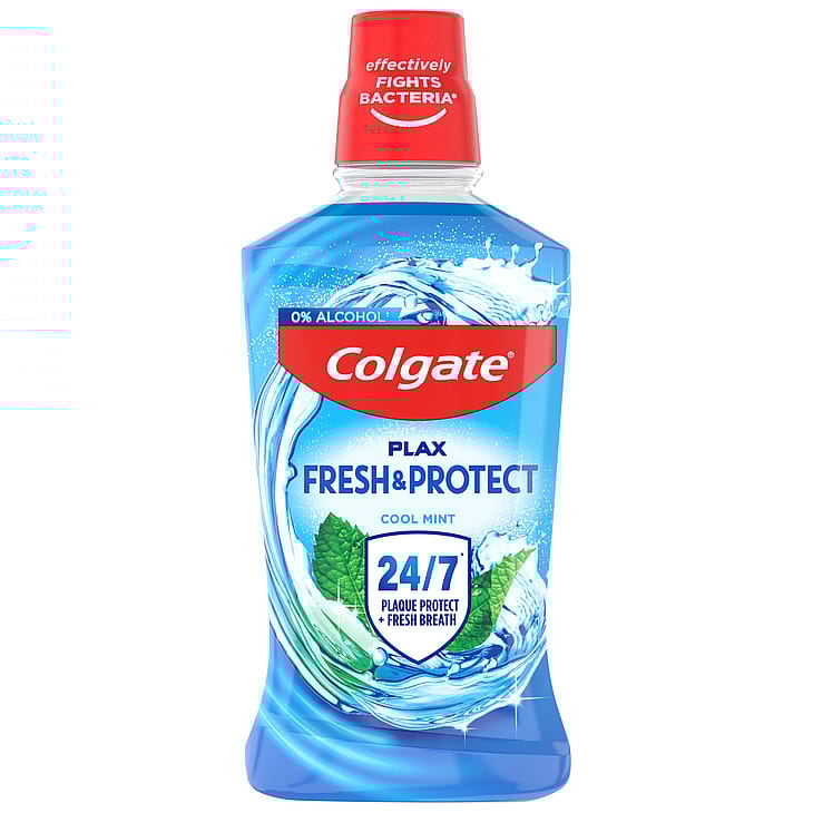 Colgate Plax Cool Mint Mundskyl er alkoholfri og giver 24/7* beskyttelse mod plak, antibakteriel beskyttelse og dårlig ånde kontrol. Beskytter mod karies, styrker emaljen og effektiv bakterie bekæmpelse. Med cool mint smag. Er klinisk testet af tandlæger. * Ved brug to gange dagligt
