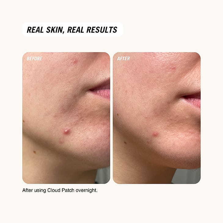 Hver patch indeholder også centellaekstrakt, som lindrer huden og mindsker rødme. Skyformen passer til svært tilgængelige områder som ved siden af næsen, øjenbrynet eller læben.
