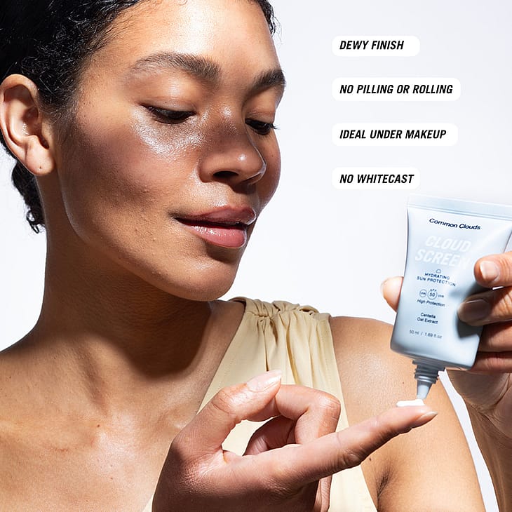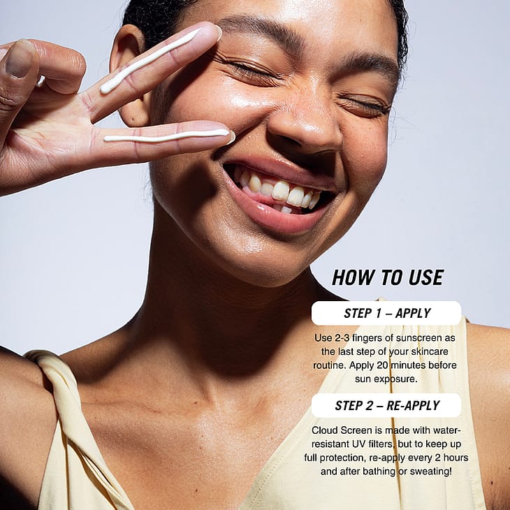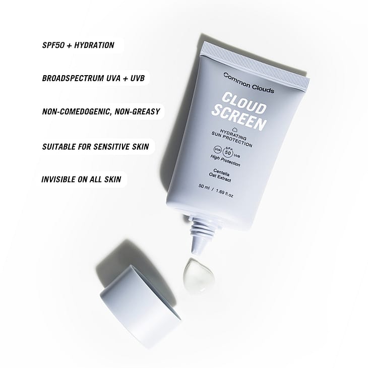 Cloud Screen er en ultralet, fugtgivende solcreme med SPF50 med bredspektret beskyttelse mod både UVA- og UVB-stråler. Cremen forvandles til en let, forfriskende, fugtgivende essens, der øjeblikkeligt smelter ind i huden uden at efterlade den klistret eller med hvide streger. Uanset hudtone kan Cloud Screen ikke ses, heller ikke under makeup. Man kan hverken mærke eller se solcremen – den helt perfekte solcreme til solcremeskeptikere!
