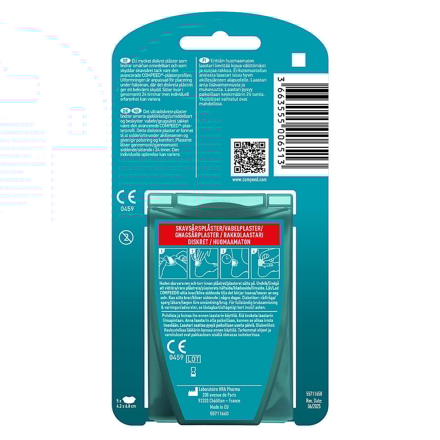 COMPEED® Vabelplaster til høje hæle med avanceret hydrokolloidteknologi til øjeblikkelig smertelindring og hurtig heling. Det unikke sommerfugleformede design med semitransparente kanter passer fint under akillessenen for ultimativ diskretion. Passer til alle vabler forårsaget af høje hæle.