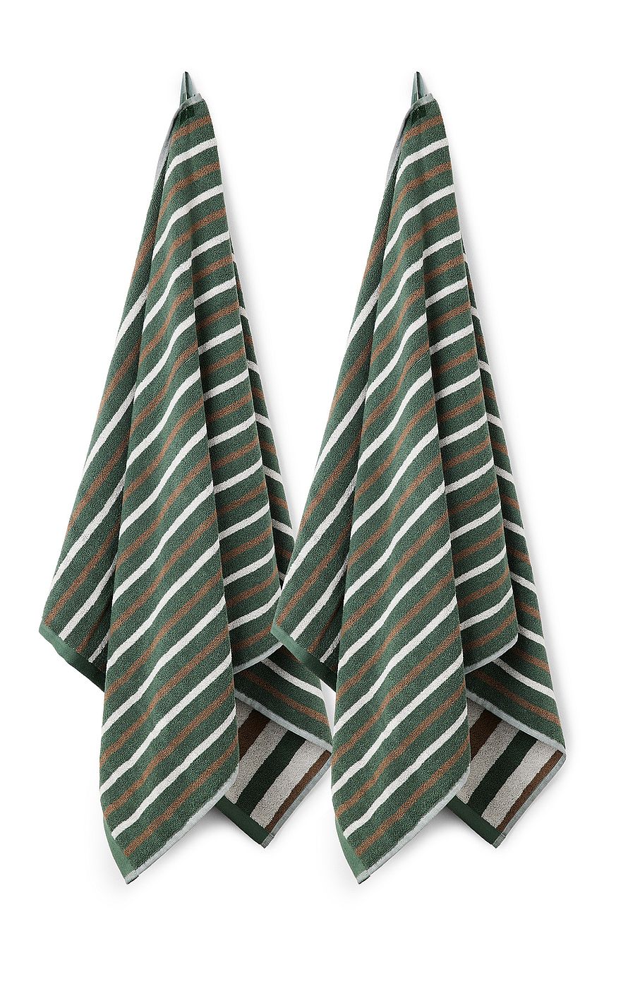 Lane håndklædet er vævet i 100% økologisk bomuld. Flot farvekombination af forest green, grå og moon.