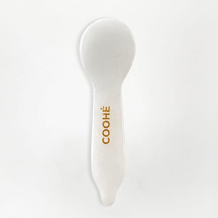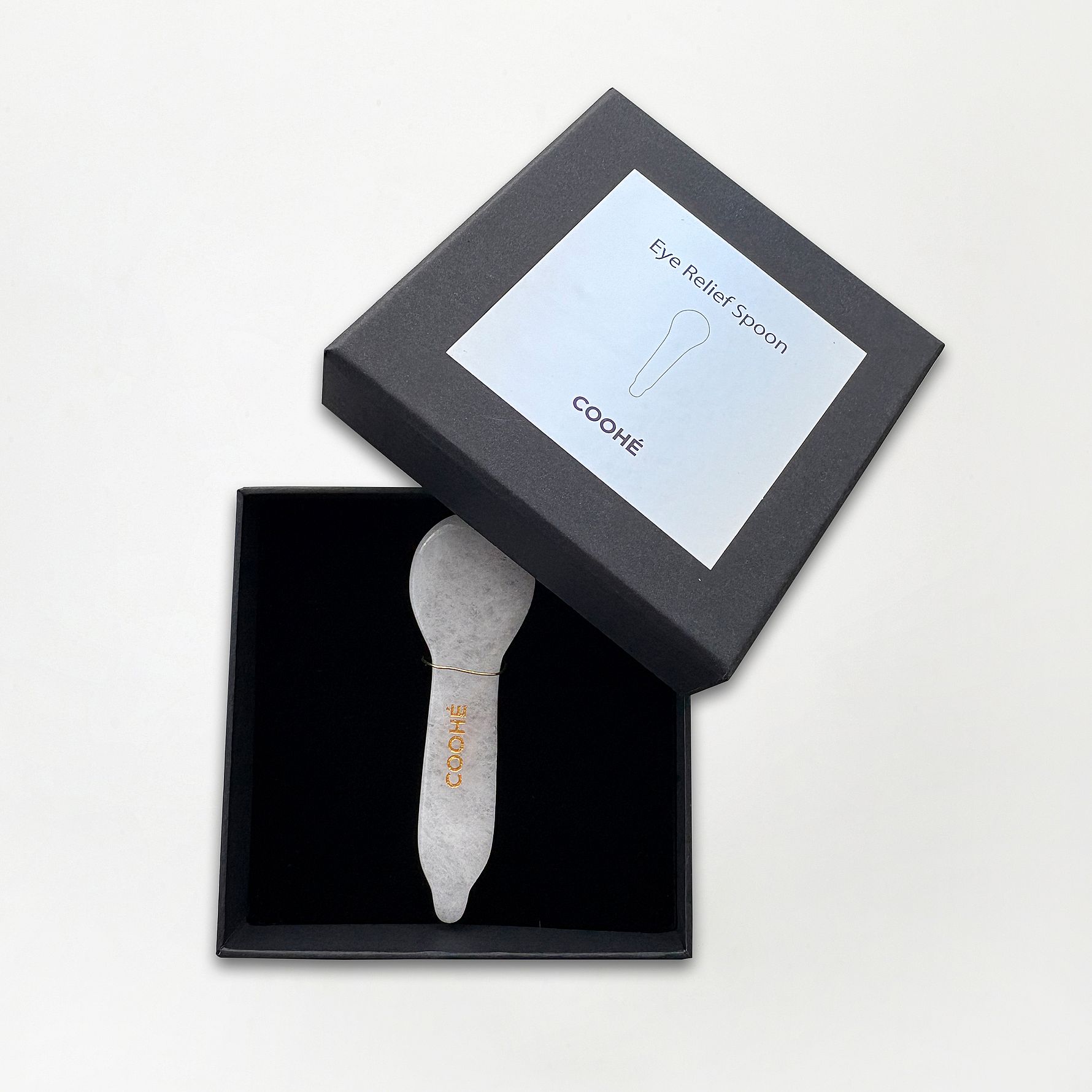 Eye Relief Gua Sha Ske er et luksuriøst og praktisk værktøj til øjenpleje, massage, ansigtsrefleksologi og energihealing. Fremstillet af 100% white jade, frigiver skeen positiv energi og giver en beroligende og forfriskende oplevelse, der supplerer din daglige hudplejerutine. Fordele: Reducerer mørke rander og hævelse: Brug den mindre, rundede kant til blidt at massere øjenområdet og fremme absorption af øjencreme. Afslapper og opfrisker: Placer skeen i køleskabet inden brug for en kølende effekt, der lindrer træthed og stimulerer blodcirkulationen omkring øjnene. Refleksologi og energihealing: Påfør let tryk på akupunkturpunkter eller triggerpunkter i ansigtet eller på kroppen for at åbne energibaner og fremme velvære. Lindrer spændinger og reducerer rynker: Brug skeens kant til forsigtigt at skrabe øjenbrynene og afslappe musklerne omkring øjnene. Brug: Påfør øjencreme eller olie-balm omkring øjnene. Massér blidt med den rundede kant af skeen i cirkulære bevægelser, indtil produktet absorberes. For ekstra opfriskning kan skeen opbevares i køleskabet inden brug. Rens værktøjet med en blød klud og opbevar det tørt efter brug.