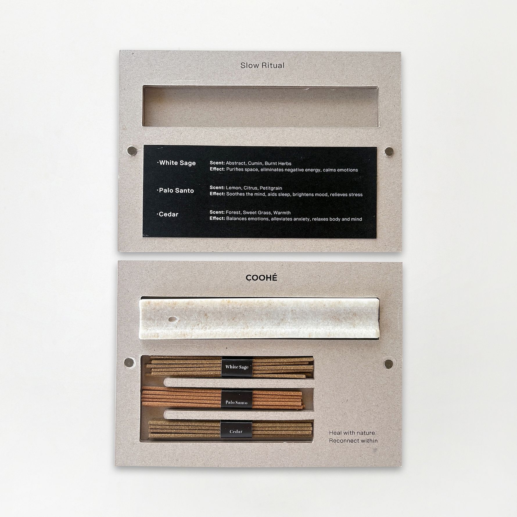 Dette sæt er sammensat til at støtte små, men betydningsfulde ritualer, hvor du kan give slip på stress, rense energien og finde indre klarhed.