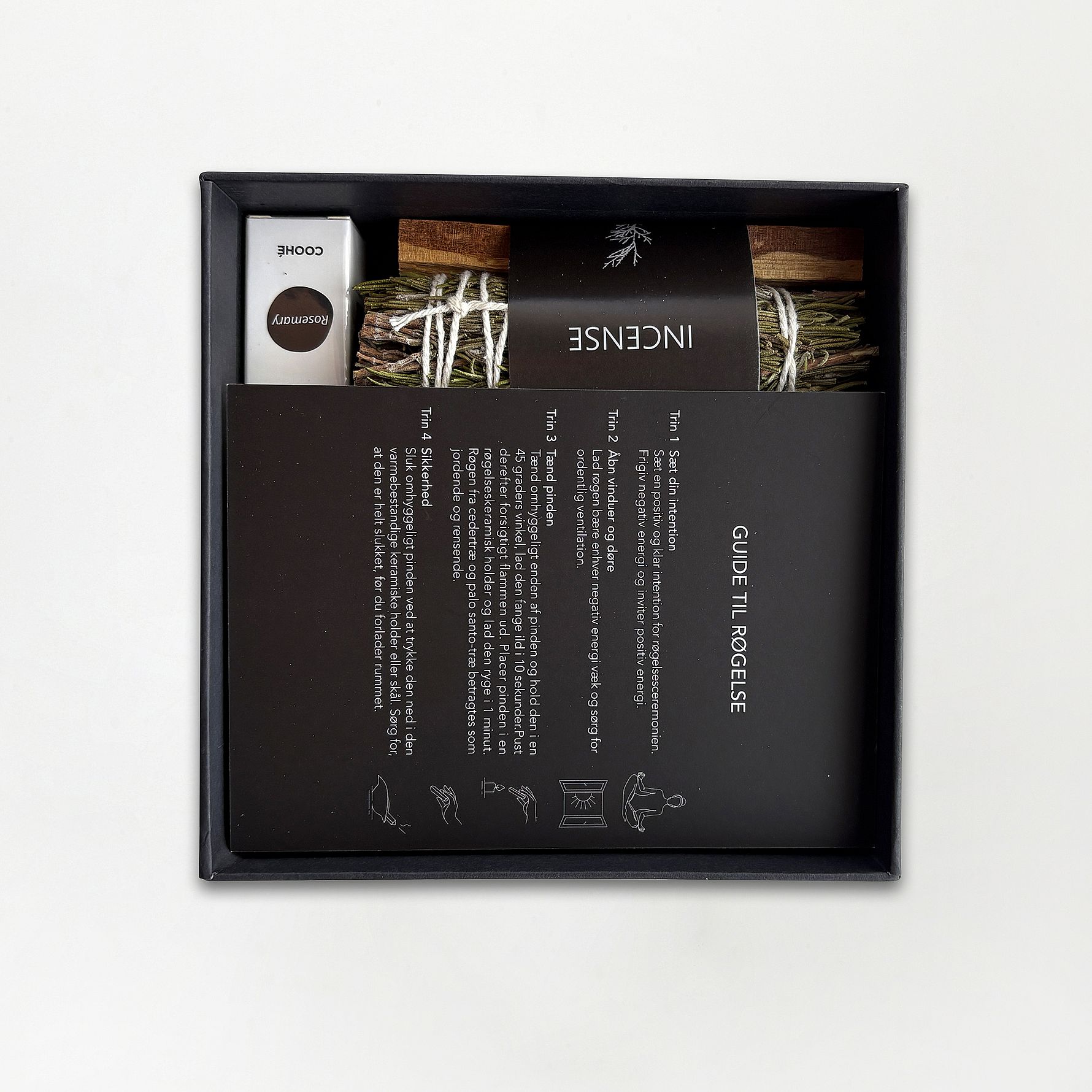 Brug rosmarin, Palo Santo eller hvid salvie til røgelsesritualer, og følg guiden i pakken.