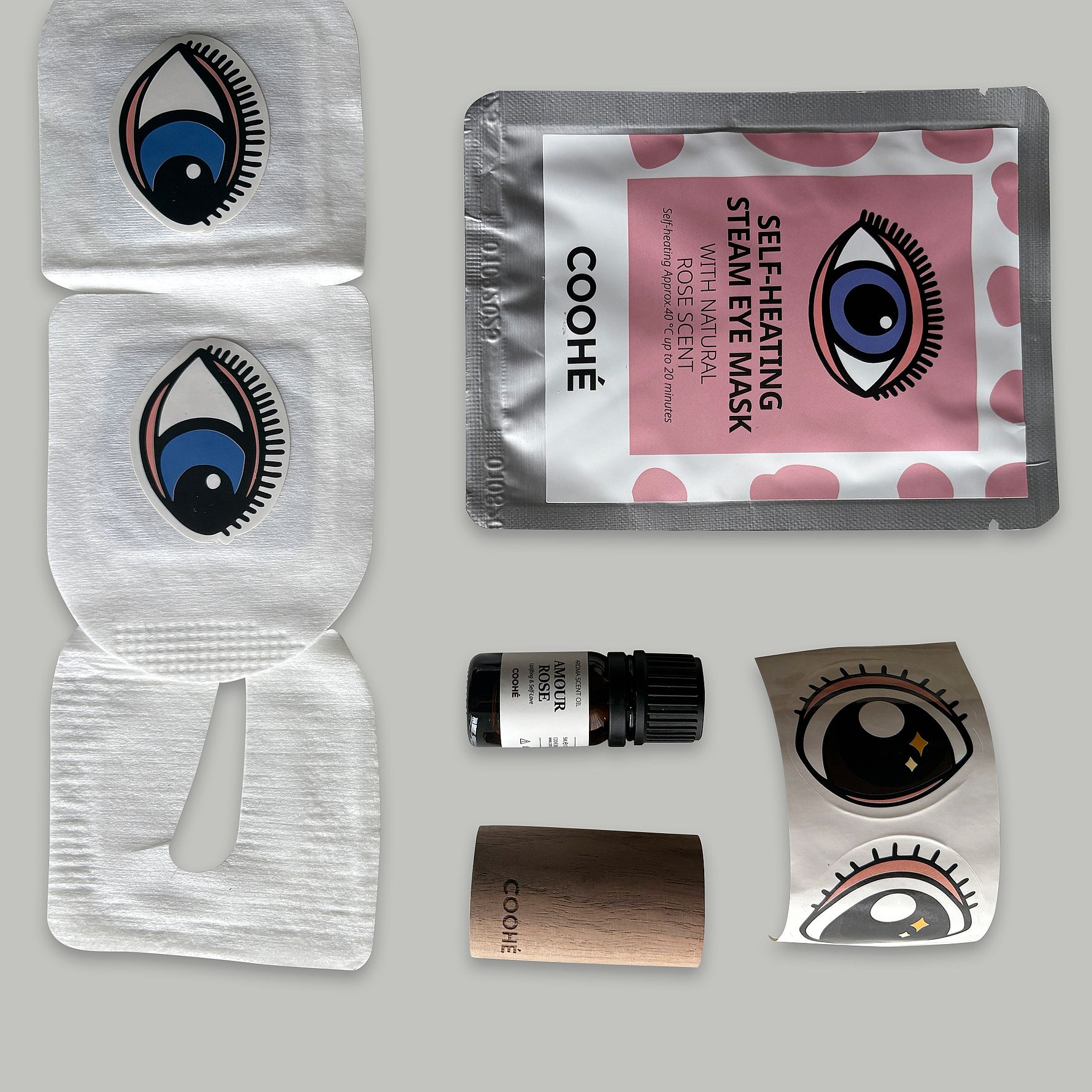 Lindrer øjentræthed, reducerer hævelse og mørke rander. Masken starter automatisk opvarmning, når den åbnes, og bliver behageligt varm (~40°C) for optimal afslapning. Beriget med ren rosenolie, som plejer og beroliger huden omkring øjnene. Kan også anvendes på andre områder af kroppen som mave eller knæ for lindring. Fordele & brug: Lindrer øjentræthed efter belastning, reducerer hævelse og mørke rander, og giver en varm og afslappende behandling. Tag masken ud af emballagen, åbn ørestropperne og påfør straks. Nyd den selvopvarmende effekt i 20–25 minutter. Kan bruges når som helst – dag eller nat, før sengetid, under rejser eller efter lange timer foran skærmen. Masken er til engangsbrug og kun til udvortes brug. Hvis irritation opstår, stop brug med det samme. Ingredienser: Iron powder, activated carbon, salt, water, vermiculite, natural geranium oil*, natural rose oil*.Indeholder spor af naturlige æteriske olier til duft. Kan forårsage allergiske reaktioner hos følsomme personer.