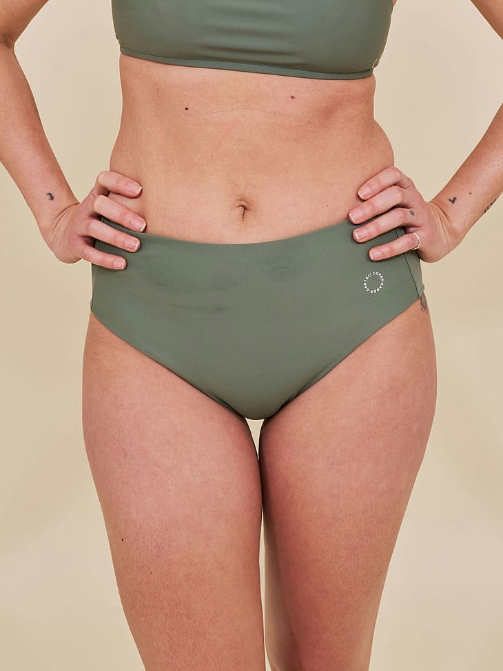 Ubud højtaljet bikini underdel fra Copenhagen Cartel er designet i et tidsløst look med en høj talje og medium snit på hofterne, der fremhæver og støtter din feminine silhuet.