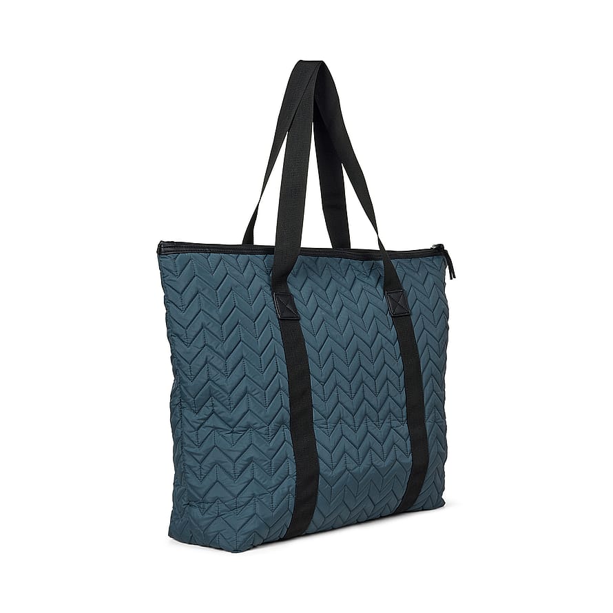 Denne taske er designet i en quilt, og dens ydre stof og inderfor er lavet af 100% certificeret genanvendt materiale. I taskens hovedrum er der plads til alt hvad du har brug for i løbet af en dag på farten f.eks. computer.