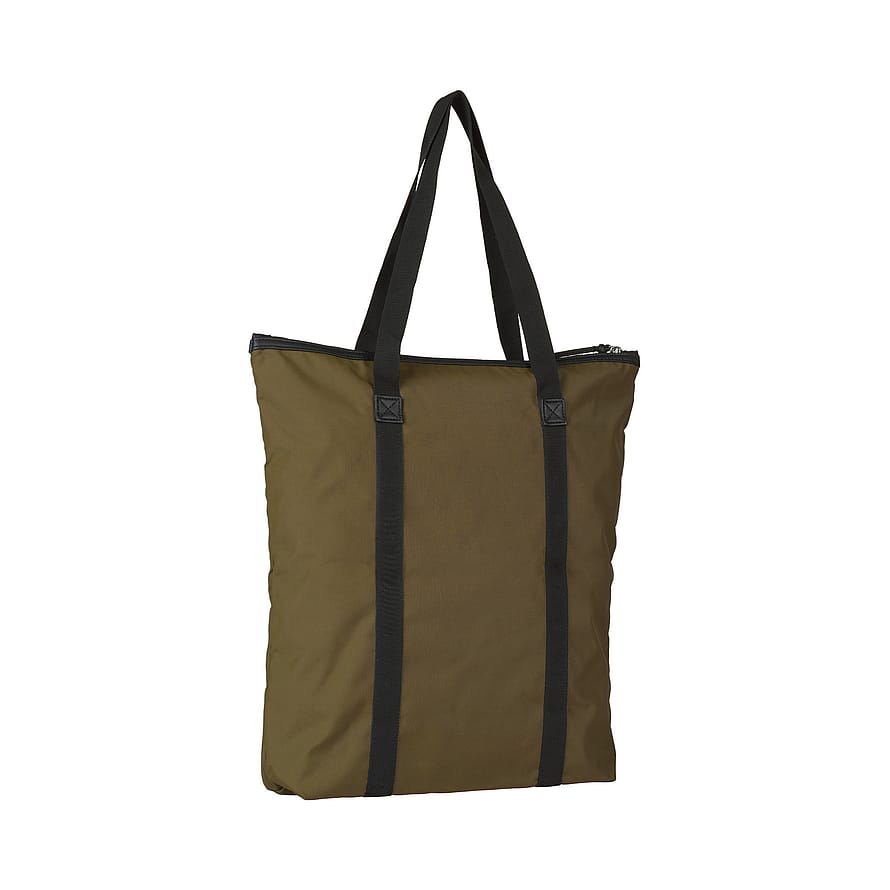 Tasken lukkes med lynlås og har lange stropper, som gør det behageligt at bære tasken hele dagen.