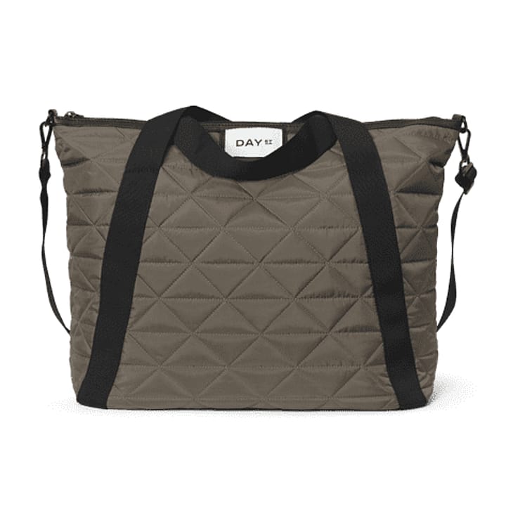 Udover de to kortere håndtag har tasken også en aftagelig og justerbar strop, så den kan både bæres som crossbody og over skulderen. Den er også designet i en quilt.
