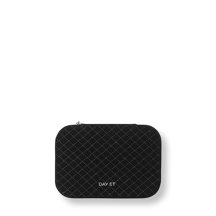Dette smykkeskrin er perfekt til opbevaring af dine smykker. Det er designet i velour med quilt detaljer, og fortil har det Day Et logoet i sølv.