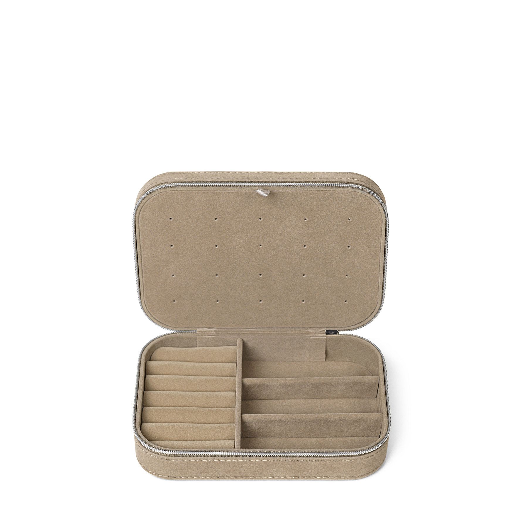 Det lukkes med en lynlås, og indeni har det flere rum, så du kan organisere dine smykker.
