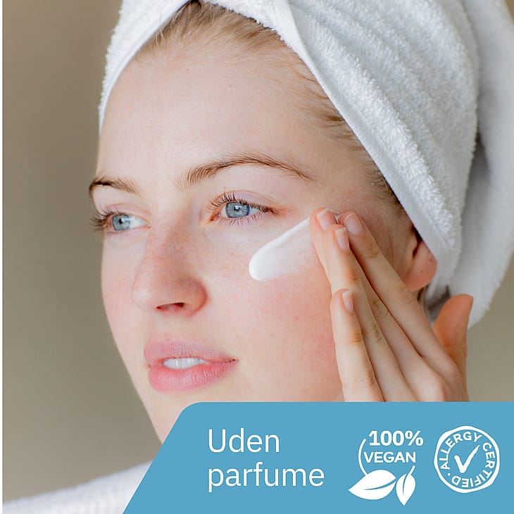 Denne fugtgivende ansigtscreme giver en øjeblikkeligm dyb og langvarig fugtgivende virkning. Blødgør hudenm styrker hudens fugtbarriere og beskytter imod skadelige UV-stråler (UVB/UVA). Dermatologisk testet på sensitiv hud. Cremen har en let tekstur, der gør den nem at påføre, og som muliggør hurtig absorbering i huden for en let og behagelig følelse. Egnet til daglig brug.