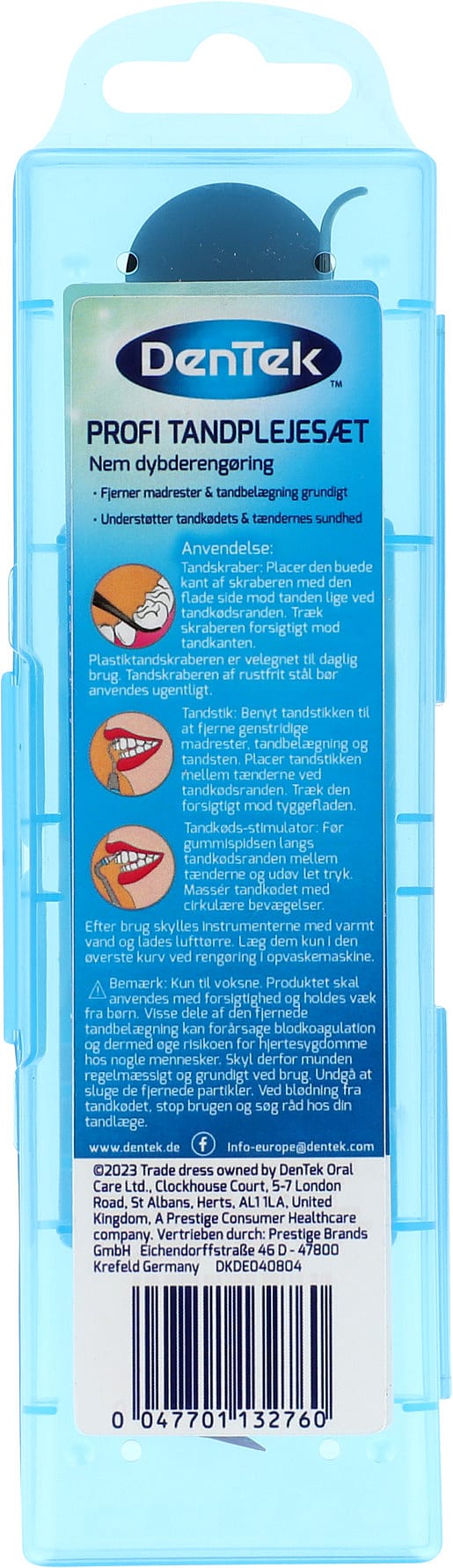 Få en grundig og skånsom tandrensning med DenTek Oral Care Kit. Sættet indeholder 5 opvaskemaskinesikre instrumenter, der hjælper med at fjerne tandbelægning og tandsten, samtidig med at de masserer tandkødet for bedre sundhed.