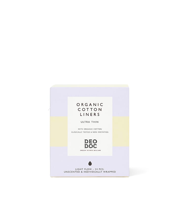 I modsætning til syntetiske materialer er bomuld komposterbart og biologisk nedbrydeligt, hvilket gør DeoDocs liners gode for vulvaen.. Hver liner er individuelt pakket ind med en ultratynd størrelse for at være behagelig hele dagen.