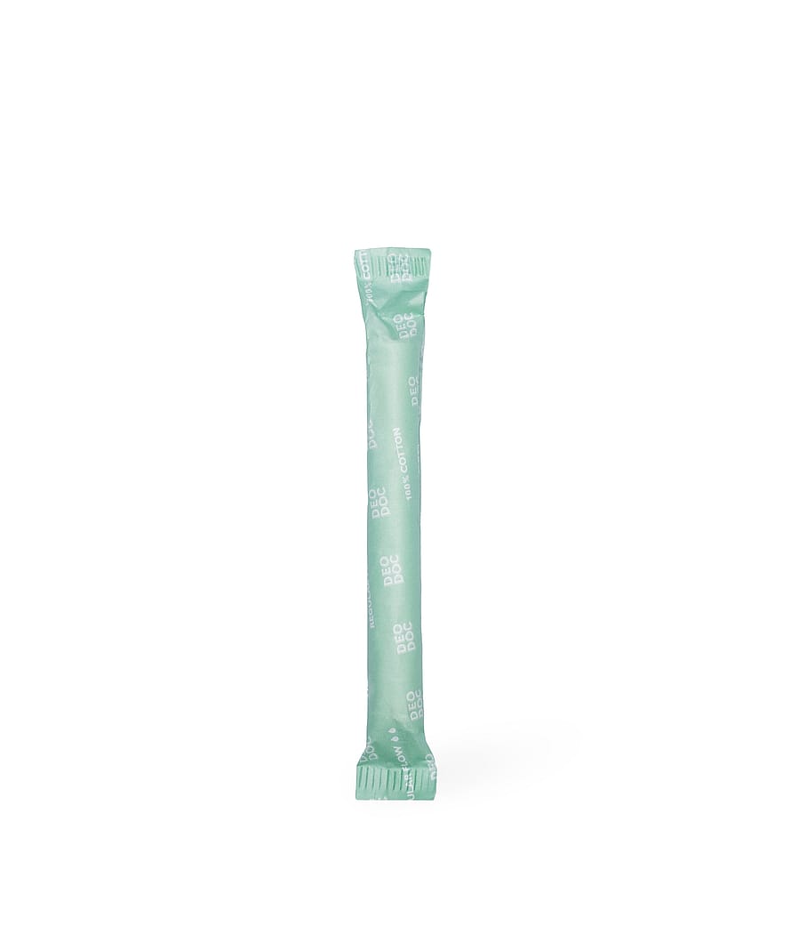 DeoDoc udviklet en skånsom bomuldstampon omviklet med et sikkerhedslag, som forhindrer tamponen i at falde ud.