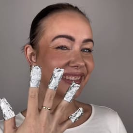 Hvis dette sker, mistes effekten. Lad hver folieindpakning være lukket godt til på de andre fingre, indtil du begynder at skrabe lakken af.