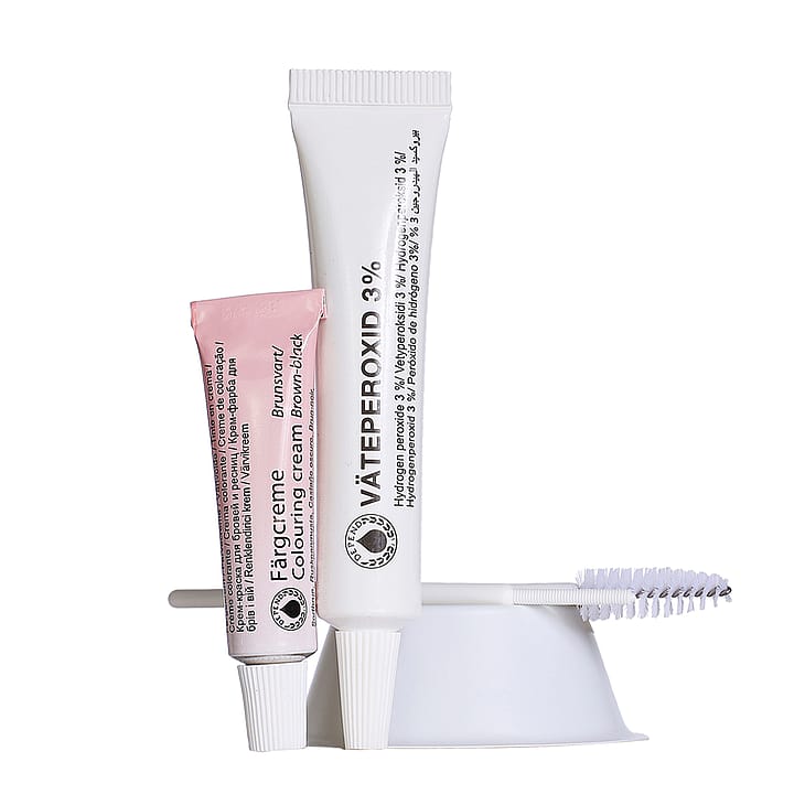 Advarsel: Indeholder hydrogenperoxid (brintoverilte). Må ikke komme i kontakt med øjnene. Ved kontakt med øjnene: Skyl straks forsigtigt med vand i flere minutter. Brug ikke produktet, hvis du har nogen form for irritation/betændelse i huden omkring øjnene. Brug ikke produktet på øjenbrynene, hvis du har plukket eller vokset dem inden for de sidste 72 timer. Hvis du på noget tidspunkt under behandlingen mærker svie eller en stikkende følelse, skal du straks afbryde behandlingen. Dette kan være tegn på overfølsomhed over for en eller flere af de indgående ingredienser. Indeholder: phenylendiaminer (toluendiaminer). Må ikke bruges til farvning af øjenvipper. Behandlingen bør ikke foretages med kortere mellemrum end hver 4. uge. Hårfarvningsmidler kan give alvorlige allergiske reaktioner. Læs og følg brugsanvisningen. Produktet er ikke beregnet til personer under 16 år. Midlertidige tatoveringer med sort henna kan øge risikoen for allergier. Farv ikke håret, hvis – du har udslæt i ansigtet eller har følsom, irriteret eller skadet hovedbund, – du tidligere har reageret på hårfarvningsmidler, – du tidligere har reageret på en midlertidig tatovering med sort henna. Lav en allergitest mindst 48 timer før brug. Allergitest: Allergiske reaktioner over for farvestoffer kan forekomme når som helst. Lav derfor en allergitest mindst 48 timer før behandlingen. Læg en klat færdigblandet creme (bland som beskrevet i brugsanvisningen) på huden i armens bøjning ved albueleddet (beskyt dit tøj). Lad cremen sidde i 10 min. Skyl herefter af med lunkent vand. Hvis huden reagerer med svie og irritation inden for 48 timer, må du ikke bruge dette produkt. Selvom testen ikke medfører en reaktion, er dette ikke nogen garanti, og testen er blot en ekstra sikkerhedsforanstaltning mod en eventuel allergisk reaktion.