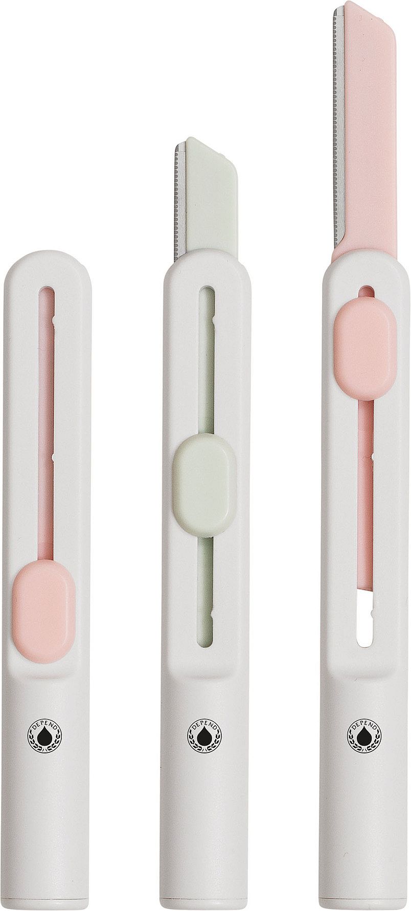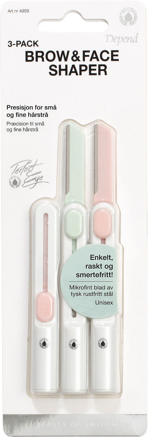 Artnr 4959 Depend Brow & Face Shaper er værktøjet til dig, der vil fjerne uønsket hårvækst på en hurtig og sikker måde. Det mikrofine udskydelige blad af tysk rustfrit kvalitetsstål kan sættes i to arbejdspositioner for optimal præcision.