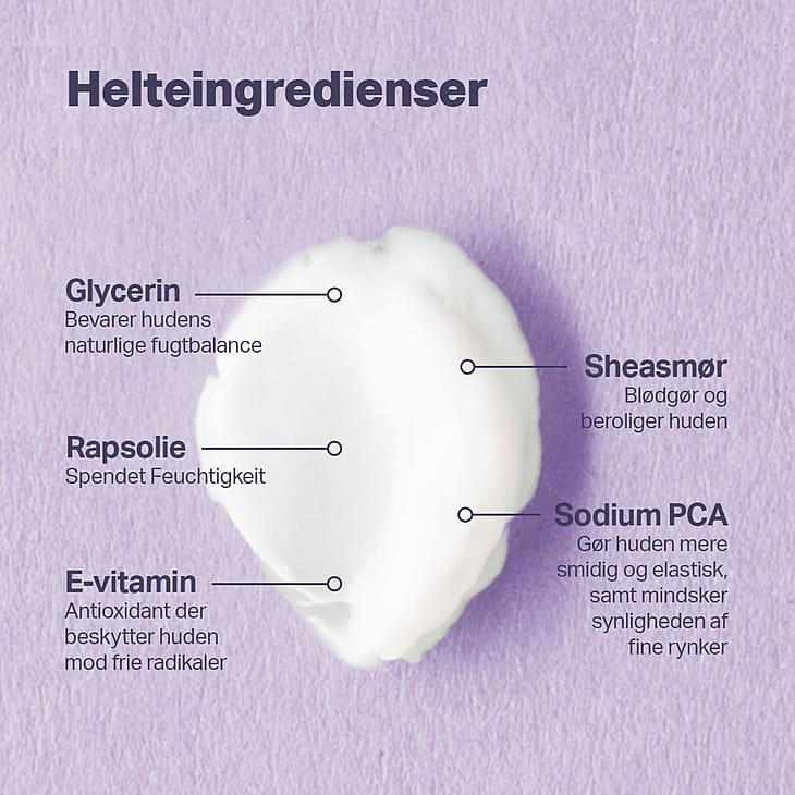 | Egenskaber | Beroligende og lindrende, Fugtgivende, Beskyttende og forebyggende |
