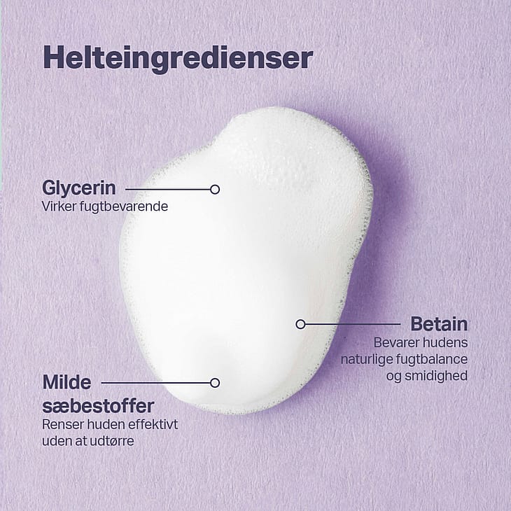 Mild og god til min sarte hudBlød renseskum, som virker og renser huden på en mild måde.
