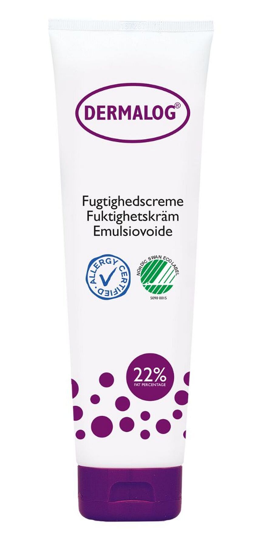DERMALOG Fugtighedscreme med 22% fedt er en fugtighedscreme uden parfume til normal og tør hud. Cremen har en langtidsvirkende fugtgivende effekt på både ansigt og krop, samtidigt med at den dæmper kløe og modvirker udtørring af huden. Derudover er den både AllergyCertified og Svanemærket og så har den en grøn kolbe i Kemiluppen. Cremen kan med fordel bruges som bodylotion, ansigtscreme eller endda håndcreme.