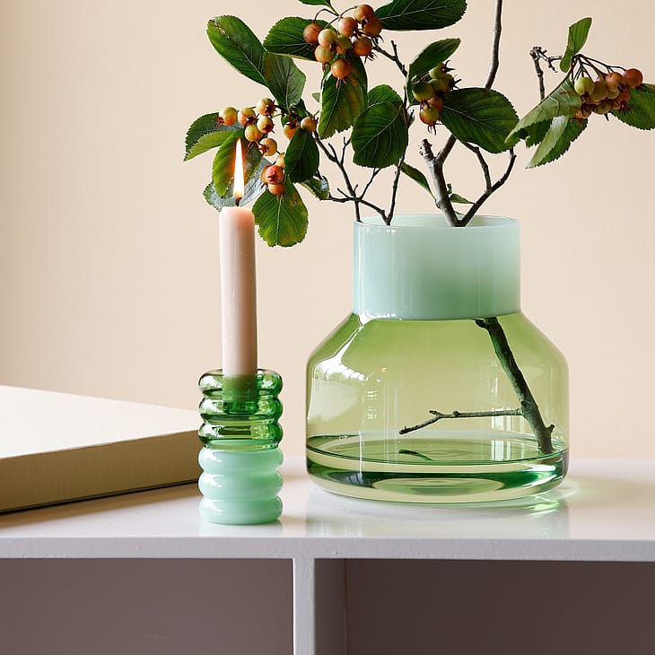Med sine runde former og unikke farvekombinationer vil Tube Candle Holder lyse et hvert rum op. Perfekt til en flot bordopdækning eller til at pynte på sofabordet, på hylden eller i vindueskarmen.