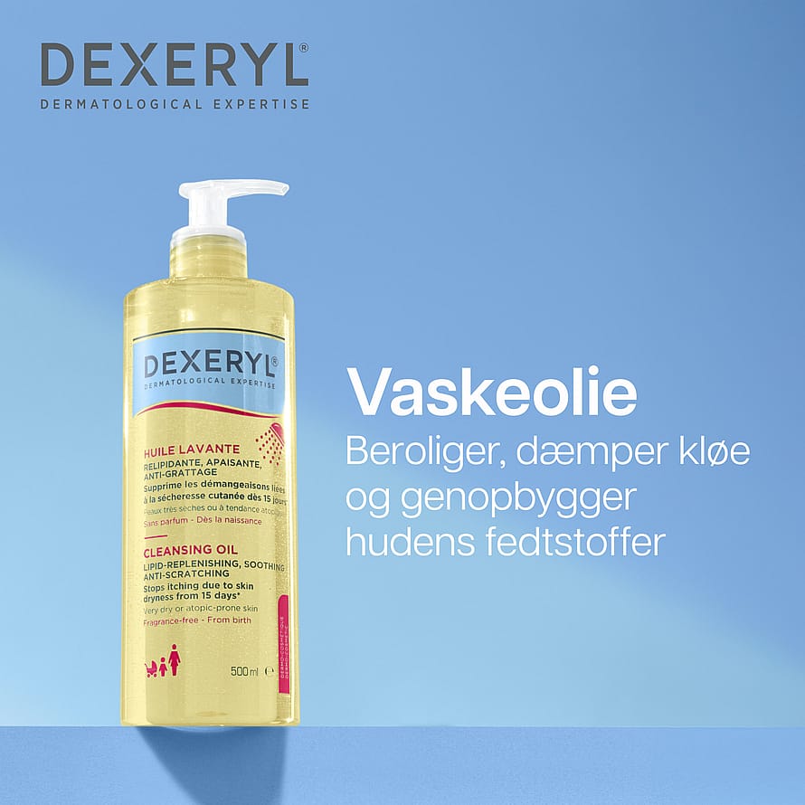 DEXERYL Cleansing Oil er specielt udviklet til skånsomt at rense, berolige og genopbygge fedtstofferne på tør til meget tør hud samtidig med, at hudbarrieren bevares.