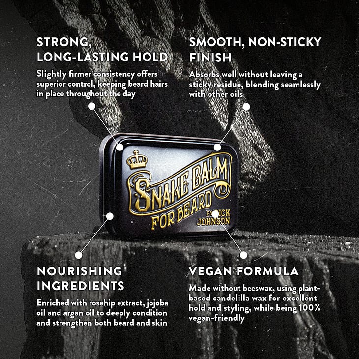 Snake Balm skægvoks giver skægget en vidunderlig glans og vitalitet. Det holder håret under kontrol hele dagen.