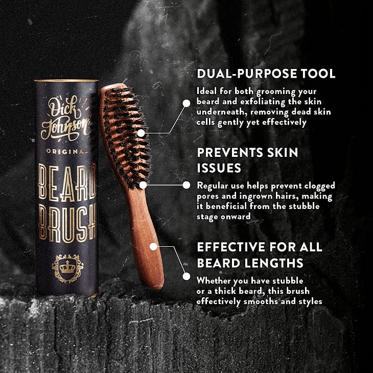 Dick Johnson’s Beard Brush er en robust, håndlavet børste designet til styling, pleje og vedligeholdelse af alle typer skæg.