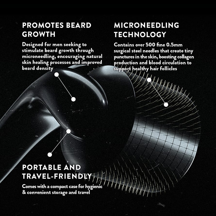 Denne unikke microneedling-roller udnytter din huds naturlige helingsproces til at fremme både sund vækst af dit skæg samt velvære for din hud.