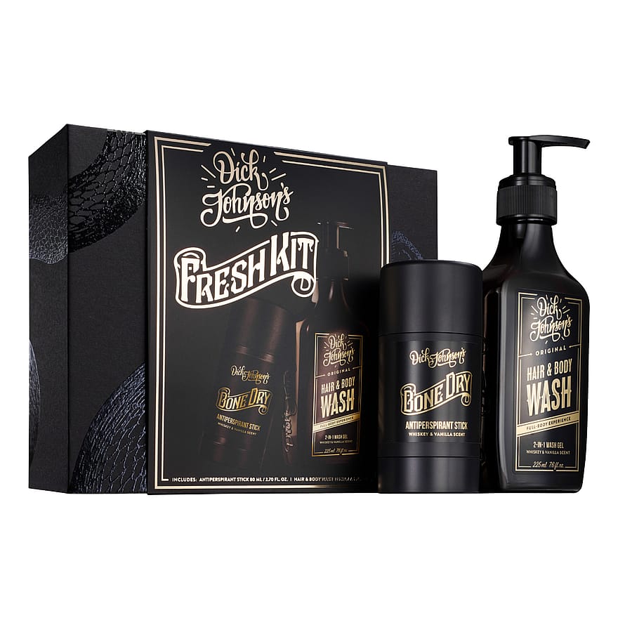Forvandl selv den mest stinkende slyngel til en velplejet gentleman på få minutter med Dick Johnson’s Fresh Kit – det luksuriøse gaveæske med to af mænds mest essentielle produkter!