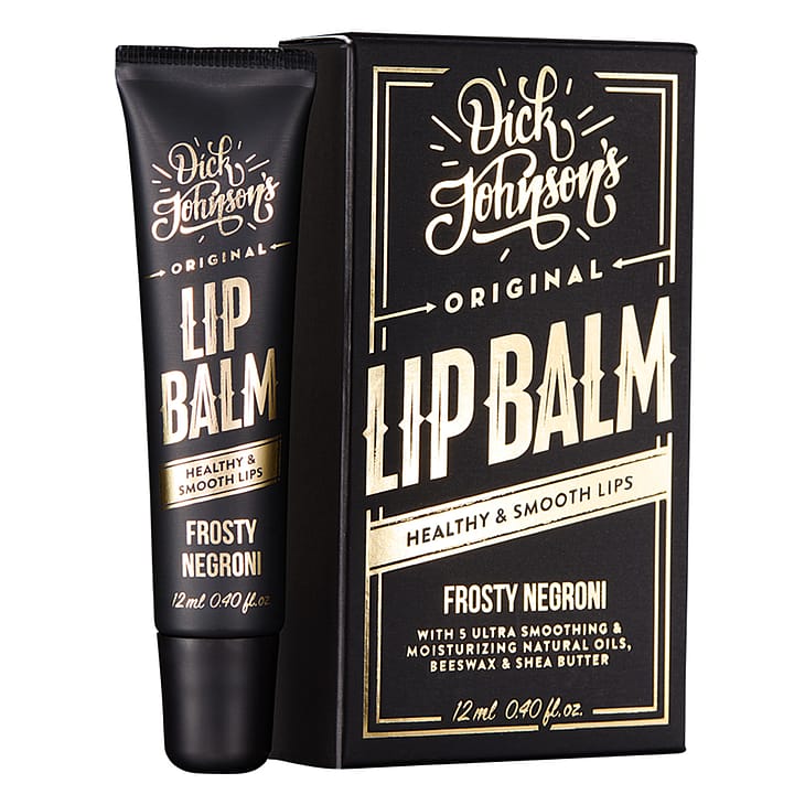 Dick Johnson’s Frosty Negroni sikrer bløde og fugtige læber når som helst og hvor som helst. Den bløde balsam leveres i en praktisk tube med en doseringsspids, der gør påføring nem og jævn.