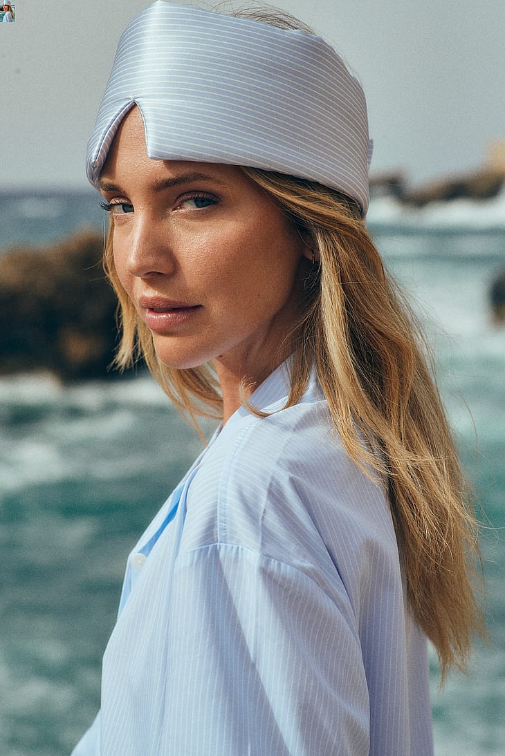 Smukt fremstillet sovemaske af åndbar, hypoallergen morbærsilke. Masken giver naturlig køling, understøtter hudens foryngelse og blokerer 100% af lyset, hvilket sikrer en dybere og mere uforstyrret søvn.
