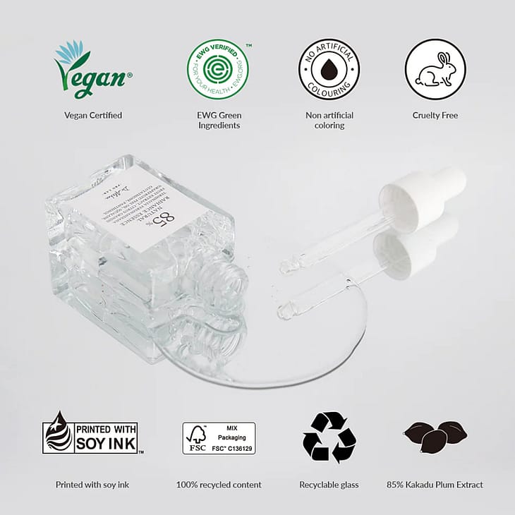 Essensen indeholder 85% Kakadu-blommeekstrakt og beroligende ingredienser, hvilket gør den sikker til sensitiv hud.