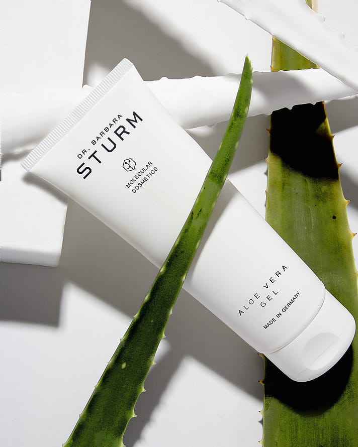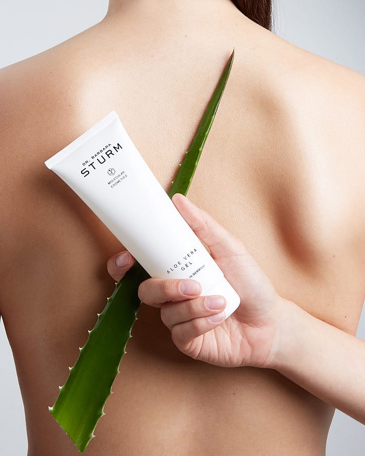 Dr. Sturms ALOE VERA GEL består af 90% ren økologiske Aloe Vera blad juice og beroliger, fugter og køler huden intenst.