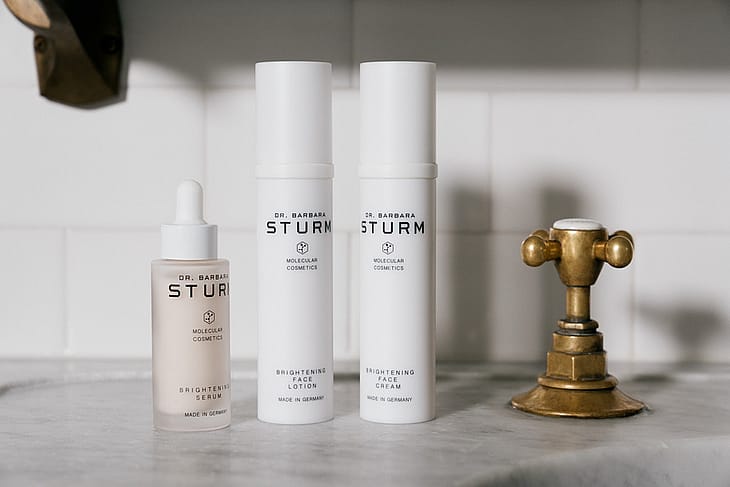 Brightening Line fra Dr. Barbara Sturm inkludereren ansigtscreme, ansigtslotion, serum og et kosttilskud.