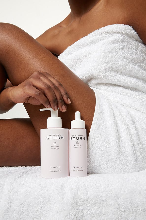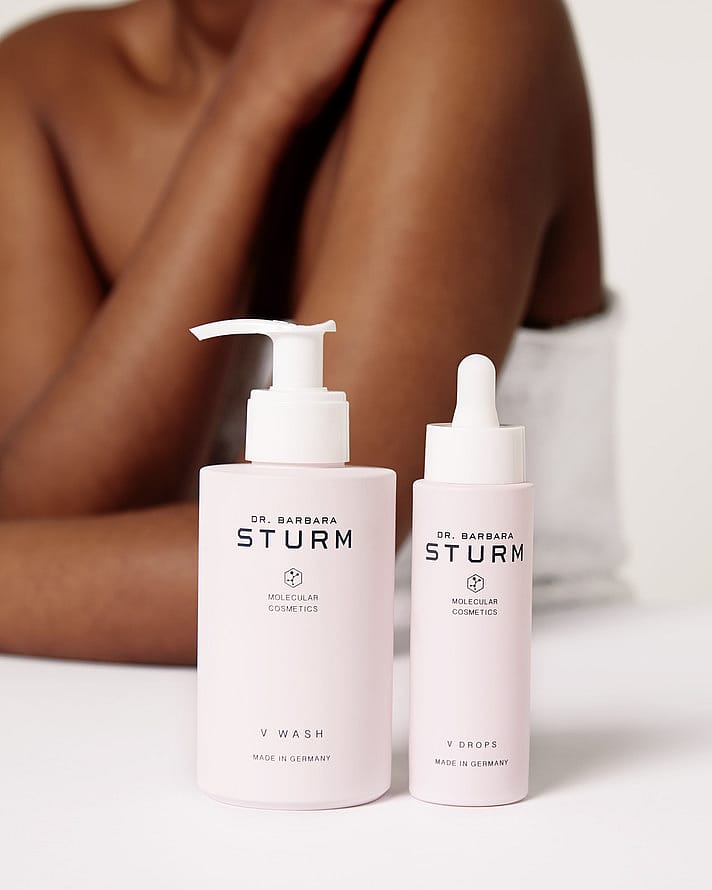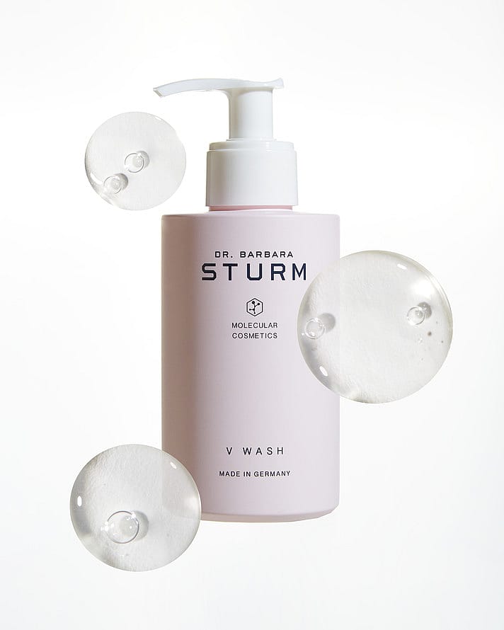 Den milde V WASH fra Dr. Barbara Sturm renser skånsomt intimområdet uden at fjerne naturlige olier og fugt fra huden.