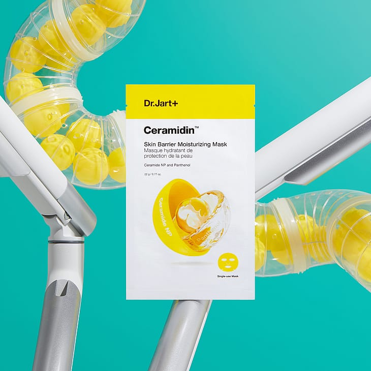 Ceramidin Skin Barrier Moisturizing Mask er en fugtgivende sheetmaske med ceramid NP og glycerin, der genopfylder tør hud for at lindre og styrker hudens barriere i 8 timer.