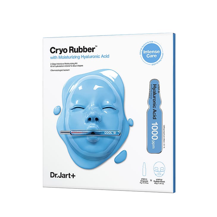 STEP 01 Dr.Jart+ Cryo Rubber Moisture Ampoule WATER\AQUA\EAU, DIPROPYLENEGLYCOL, CAPRYLIC/CAPRIC TRIGLYCERIDE, GLYCERIN, BUTYLENE GLYCOL, NIACINAMIDE, 1, 2-HEXANEDIOL, PEG-240/HDI COPOLYMER BIS-DECYLTETRADECETH-20 ETHER, DIMETHICONE, GLYCERETH-26, TREHALOSE, MANGIFERA INDICA (MANGO) SEED BUTTER, MACADAMIATERNIFOLIA SEED OIL, ISOHEXADECANE, SODIUM HYALURONATE, ALLANTOIN, BETAINE, ETHYLHEXYLGLYCERIN, MELIA AZADIRACHTA LEAF EXTRACT, MELIA AZADIRACHTA FLOWEREXTRACT, COCCINIA INDICA FRUIT EXTRACT, ALOE BARBADENSIS FLOWER EXTRACT, SOLANUMMELONGENA (EGGPLANT) FRUIT EXTRACT, SIMMONDSIA CHINENSIS (JOJOBA) SEED OIL, CURCUMA LONGA (TURMERIC) ROOT EXTRACT, OCIMUM SANCTUM LEAF EXTRACT, CORALLINAOFFICINALIS EXTRACT, ALLIUM CEPA (ONION) BULB EXTRACT, UNDARIA PINNATIFIDA EXTRACT, CYNARA SCOLYMUS (ARTICHOKE) LEAF EXTRACT, MUSA SAPIENTUM (BANANA) FRUIT EXTRACT, ASPARAGUS OFFICINALIS EXTRACT, BRASSICA OLERACEA CAPITATA (CABBAGE) LEAF EXTRACT, GLYCERYL STEARATE, PEG-100 STEARATE, SORBITAN SESQUIOLEATE, CETEARYL ALCOHOL, HYDROXYETHYL ACRYLATE/SODIUM ACRYLOYLDIMETHYL TAURATE COPOLYMER, GLYCERYLACRYLATE/ACRYLIC ACID COPOLYMER, POLYSORBATE 60, SORBITAN ISOSTEARATE, POTASSIUMLAURATE, DISODIUM EDTA, TOCOPHEROL STEP 02 Dr.Jart+ Cryo Rubber Moisture Mask WATER\AQUA\EAU, METHYLPROPANEDIOL, CHONDRUS CRISPUS EXTRACT, GLYCERIN, CERATONIA SILIQUA (CAROB) GUM, CAPRYLYLGLYCOL, ALLANTOIN, MELIA AZADIRACHTA LEAF EXTRACT, MELIA AZADIRACHTA FLOWEREXTRACT, DIPOTASSIUM GLYCYRRHIZATE, BUTYLENE GLYCOL, ETHYLHEXYLGLYCERIN, COCCINIAINDICA FRUIT EXTRACT, ALOE BARBADENSIS FLOWER EXTRACT, SOLANUM MELONGENA(EGGPLANT) FRUIT EXTRACT, SIMMONDSIA CHINENSIS (JOJOBA) SEED OIL, CURCUMA LONGA(TURMERIC) ROOT EXTRACT, OCIMUM SANCTUM LEAF EXTRACT, CORALLINA OFFICINALISEXTRACT, XYLITOL, GLUCOSE, LAMINARIA JAPONICA EXTRACT, XANTHAN GUM, POTASSIUMCHLORIDE, DIPROPYLENE GLYCOL, ALGIN, SUCROSE, PANTHENOL, POLYGLYCERYL-10 LAURATE, CALCIUM CHLORIDE, CITRIC ACID, XYLITYLGLUCOSIDE, ANHYDROXYLITOL, HYDROGENDIMETHICONE, KAOLIN, DIATOMACEOUS EARTH\SOLUM DIATOMEAE\TERRE DE DIATOMÉES, DISODIUM EDTA, SODIUM CITRATE, HYDROXYACETOPHENONE, TITANIUM DIOXIDE (CI 77891) Please be aware that ingredient lists may change or vary from time to time. Please refer to the ingredient list on the product package you receive for the most up to date list of ingredients.