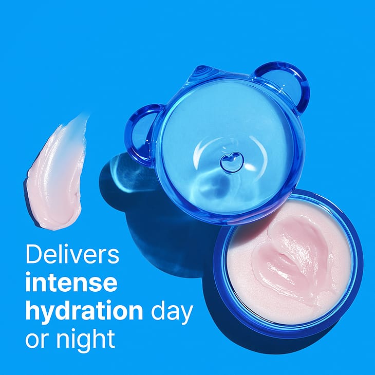 Gelé-formlen, der kommer dine tørre læber til undsætning, kommer i en uimodståelig jelly bear-indpakning. Læbebehandlingen giver intens fugt til både dag og nat. Du kan bruge den som maske eller som primer for at få en god, fugtgivende base før læbestift eller lipgloss.