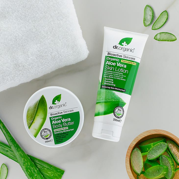 Aloe Vera Body Butter er velegnet til alle hudtyper. Tilfører fugt og næring. Alle Dr. Organics produkter er minimum 70 % økologiske.