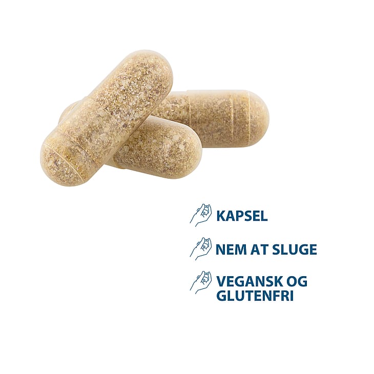 - Indeholder vitaminer, mineraler, aminosyrer og planteekstrakter