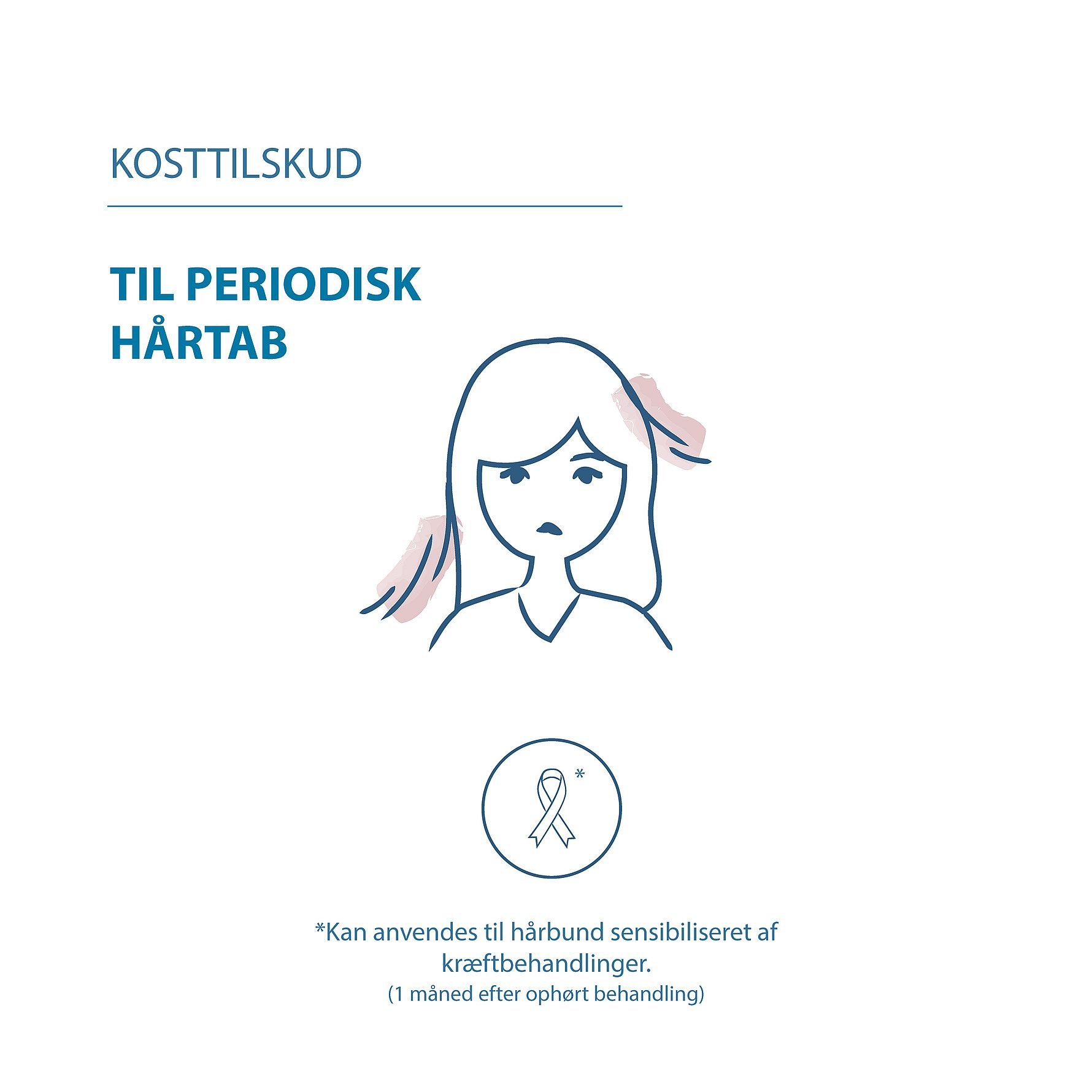 Biotin (vitamin B8) som bidrager til at vedligeholde normalt hår.