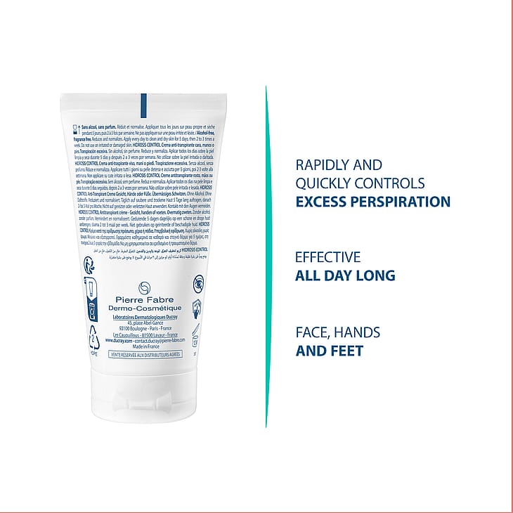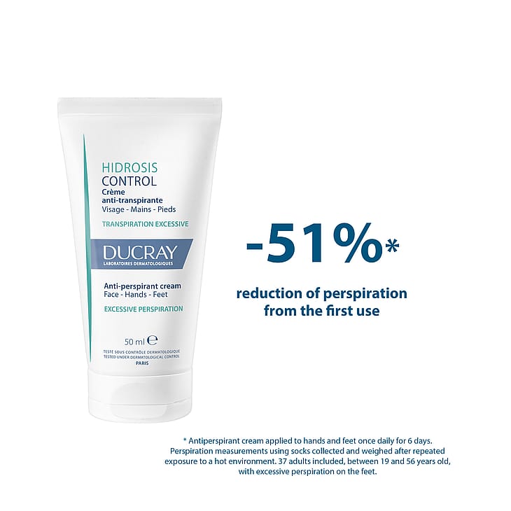 ProduktbeskrivelseDucray Hidrosis Control Antiperspirant Cream er en antiperspirant creme udviklet til voksne og teenagere fra 12 år, som oplever overdreven sved i ansigt, på hænder eller fødder. Cremen hjælper med at reducere og normalisere svedproduktionen, samtidig med at den kontrollerer dårlig lugt og absorberer fugt.