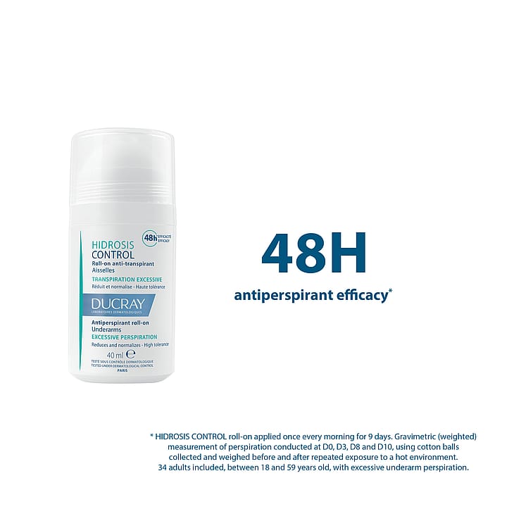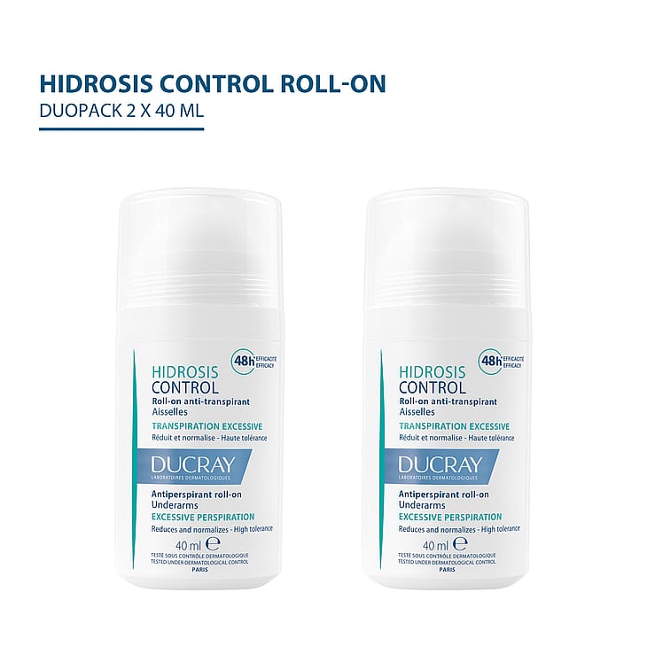 Spar 30% ved køb af Ducray Hidrosis Control Roll-On Duopack (2 x 40 ml). ProduktbeskrivelseHidrosis Control Antiperspirant Roll-On er en roll-on deodorant, der reducerer og kontrollerer almindelig svedproduktion under armene samt svedproduktion hos personer med hyperhidrosis (overdreven svedproduktion).