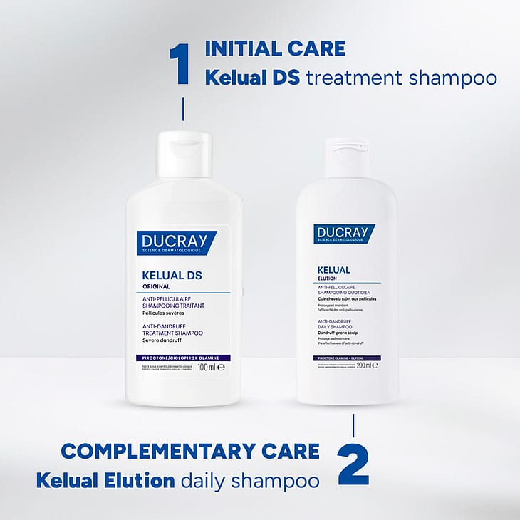 ProduktbeskrivelseDucray Kelual DS Original Anti-Dandruff Treatment Shampoo er en skælshampoo, der effektivt reducerer kløe, rødme og svær skældannelse i hårbunden. Shampooen er udviklet til at reducere og modvirke skæl og tendens til seboroisk dermatitis og er særligt velegnet til hårbunde, der ofte oplever irritation og gentagende udbrud af skæl.