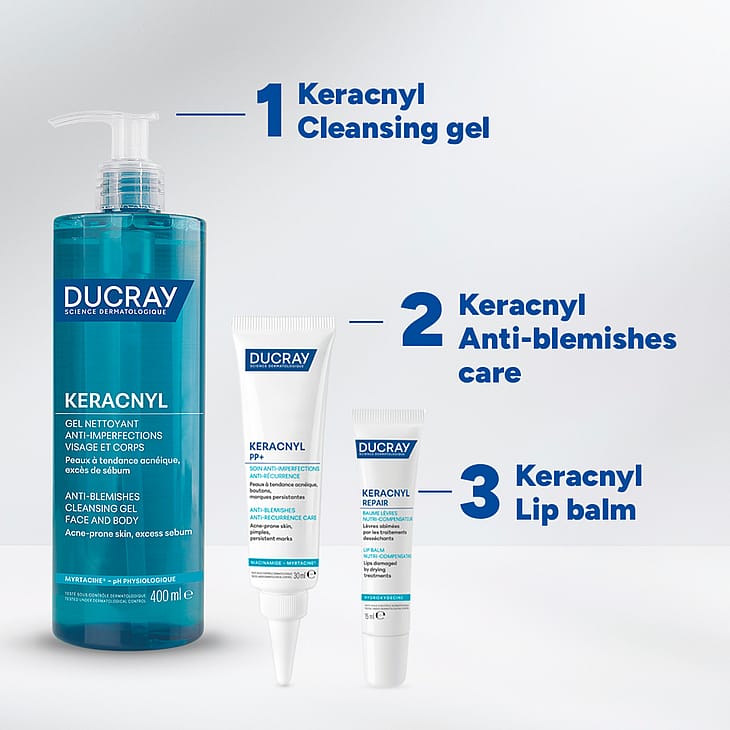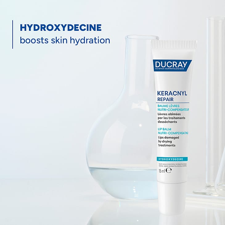 Fugtkompenserende læbepomade til læber i udtørrende oral aknebehandling. Den styrker hudens barriere og booster hudens egen evne til at holde sig fugtet.